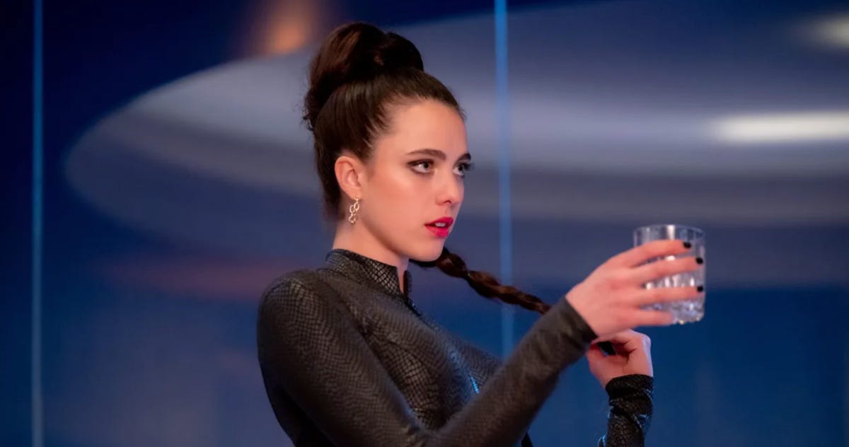 After deliberation, Elisabeth succumbs to the promise of youth, injecting herself with the serum. A gruesome process follows, as a younger, flawless version of herself emerges from a slit in her back. This "other" self, who names herself Sue (Margaret Qualley), requires daily injections of stabilizer fluid from Elisabeth’s body to stay youthful and functional. The catch is, Elisabeth must transfer her consciousness between her older body and her younger self every seven days without exception, maintaining a precarious balance between the two lives she now leads.